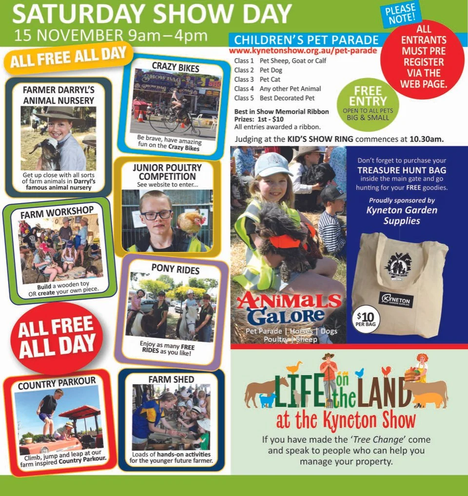 The Pavilion has been at the heart of the Kyneton Show since the very first competition in 1858 and it's never been bigger with more than 2,000 entries and growing! You'll see everything from the best country baking and champion rose to biggest vegetable and a huge new LEGO challenge; from knitting and needlework to best decorated pet rock; from jams and chutneys to clever craft, amazing art and stunning photography.